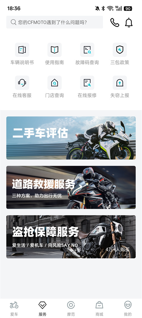 在线维保:一键报修、门店查询、故障码解读、道路救援、失窃上报。