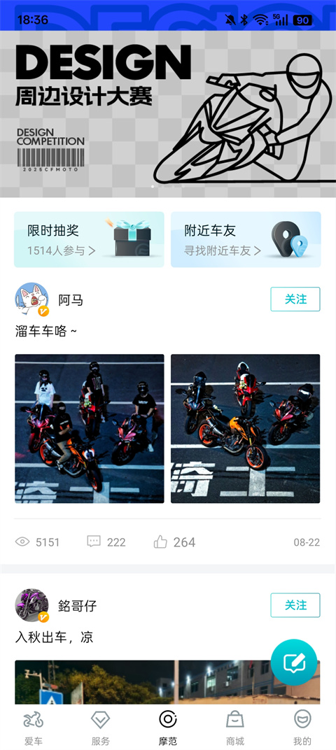 摩范圈:发帖分享骑行日记、照片视频,参与话题互动。