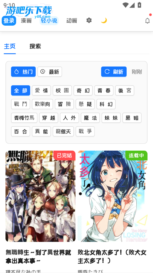 下载进入doki漫画软件,点击轻小说可以看到很多小说