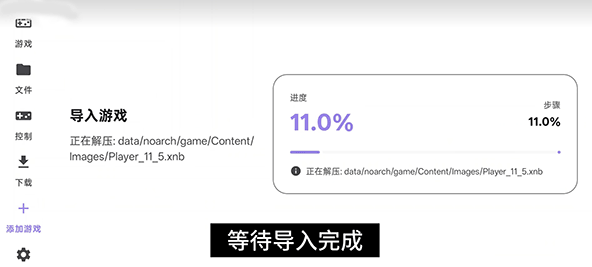 3)全部都导入完成后,就点击之前导入游戏界面的开始导入,会出现导入进度条,等待一会就可以了。
