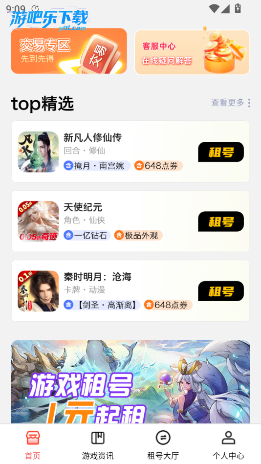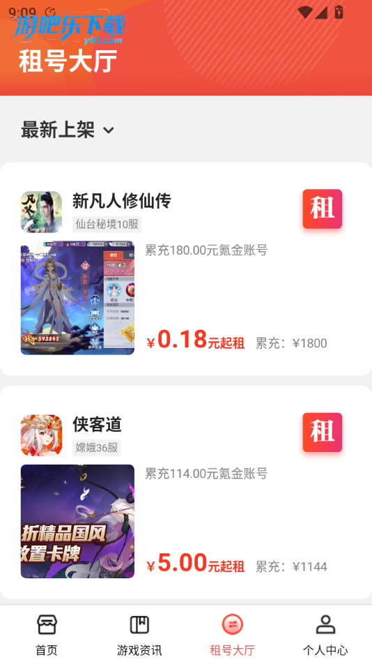 点击租号大厅,有更多类型的账号哦