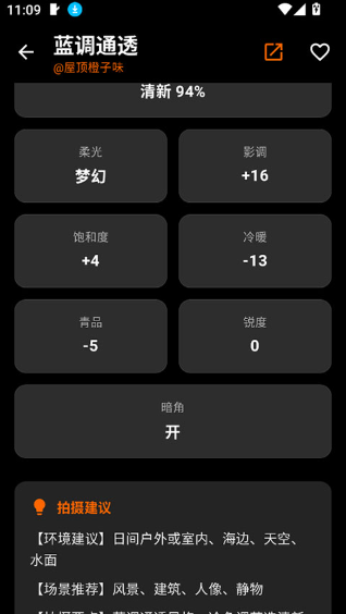 4款全新预设 - 蓝调通透、晴天复古、霓虹灯、复古怀旧,作者:@屋顶橙子味
