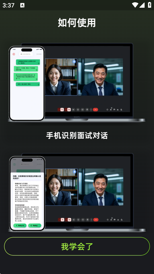 同步转写面试官语音为文字,1–3 秒生成第一人称、语气自然的专业答案,支持上下文语境分析,应对压力面与项目深挖。