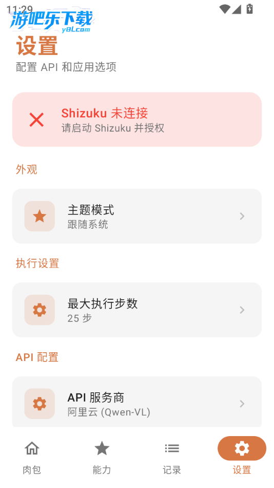 下载进入肉包roubao软件,需要首选链接shizuku