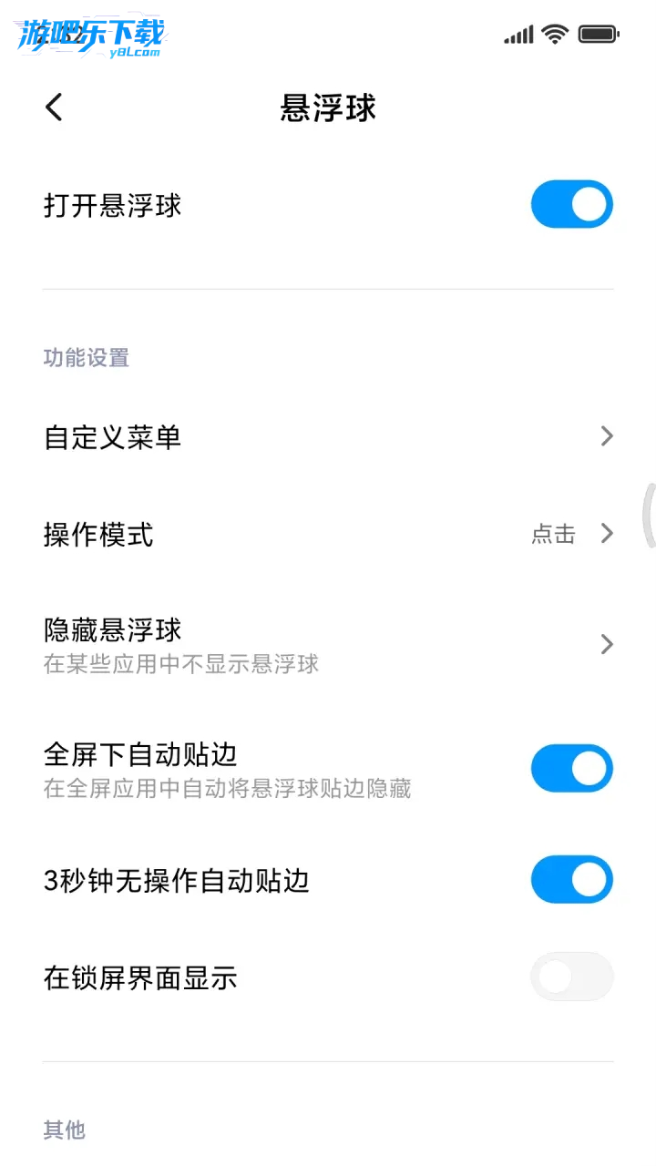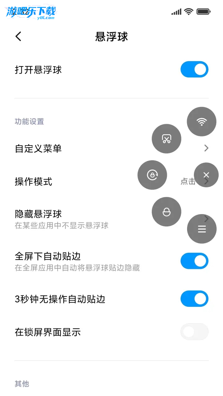 开启路径:设置→更多设置→悬浮球→打开 "开启悬浮球" 开关