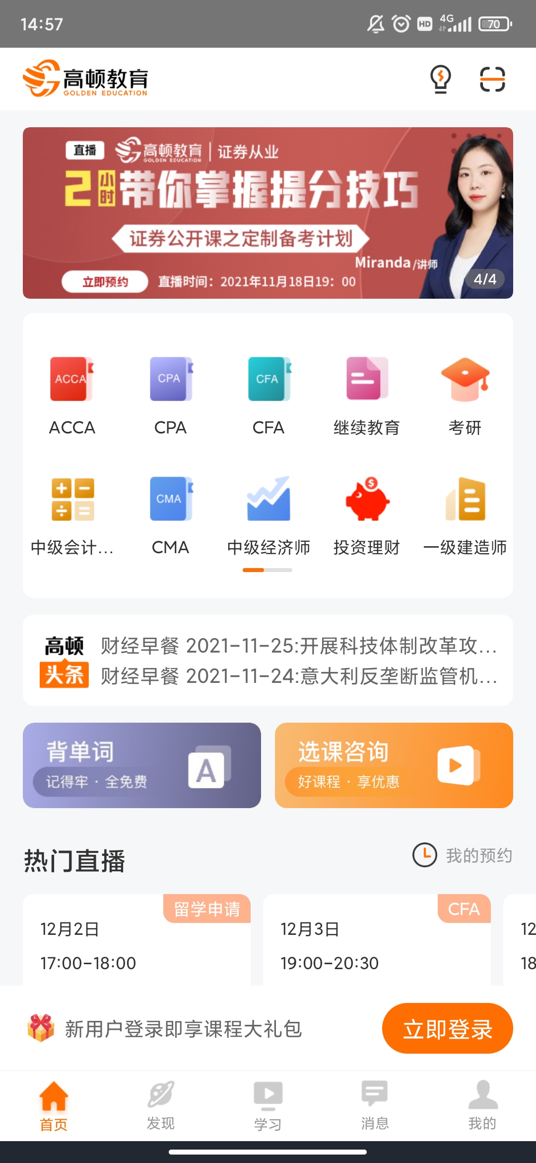 2. 直播课堂互动:实时互动,专业名师为你解答疑难,还能进行高效的考试辅导和财经热点解读。