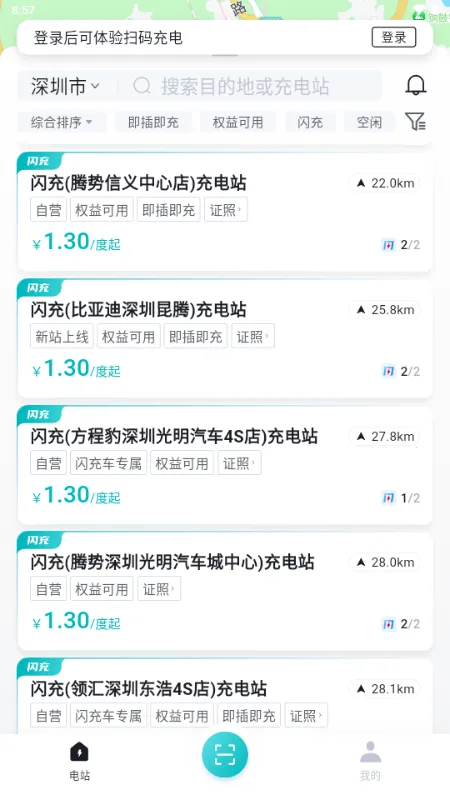 2.精准查桩超贴心:内置高精度地图,可实时查询周边闪充站的空闲桩位、功率与价格,并提供一键导航,让您轻松找到合适的充电站。