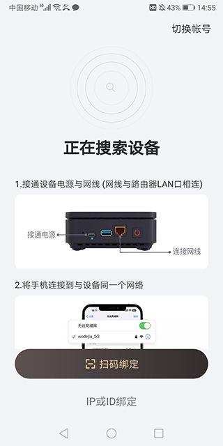 也可以进行扫码或者是输入设备ip地址进行手动绑定