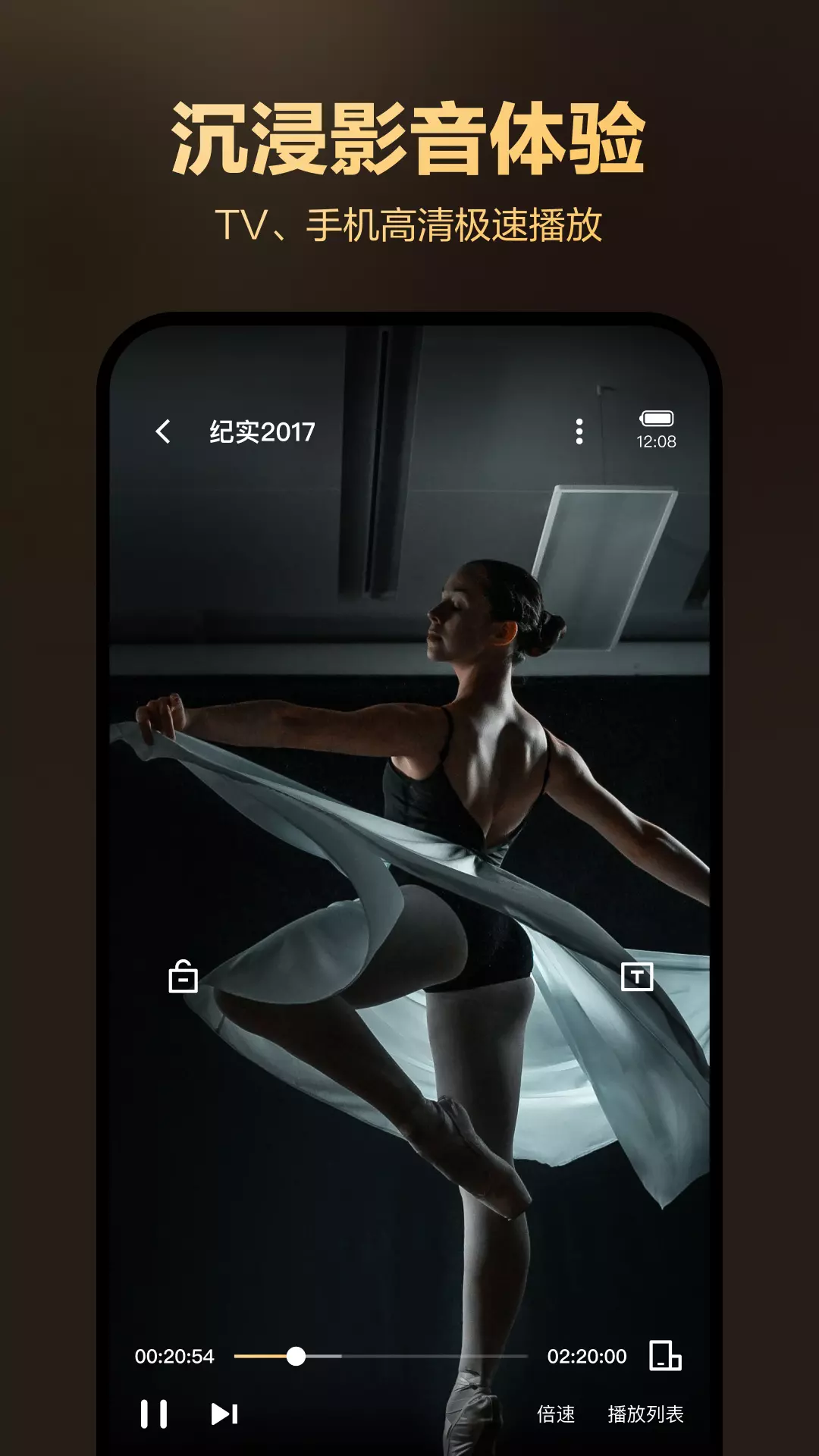 智能优化 去黑框功能、播放比例调整、倍速播放 (0.5x-2.0x)、字幕自动匹配
