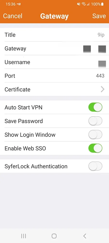 2、然后进行配置,主要设置项就是网关和用户名(一般就是学号)了,标题随便写,其他的都不用管(端口默认443即可,一般不会变):对于网关来说,可以先进入校园网的VPN登陆界面,输入用户名(学号)、密码登陆后网址就会变成域名,如下图,为202.204.105.45,一般来说这样得到的就是网关了。