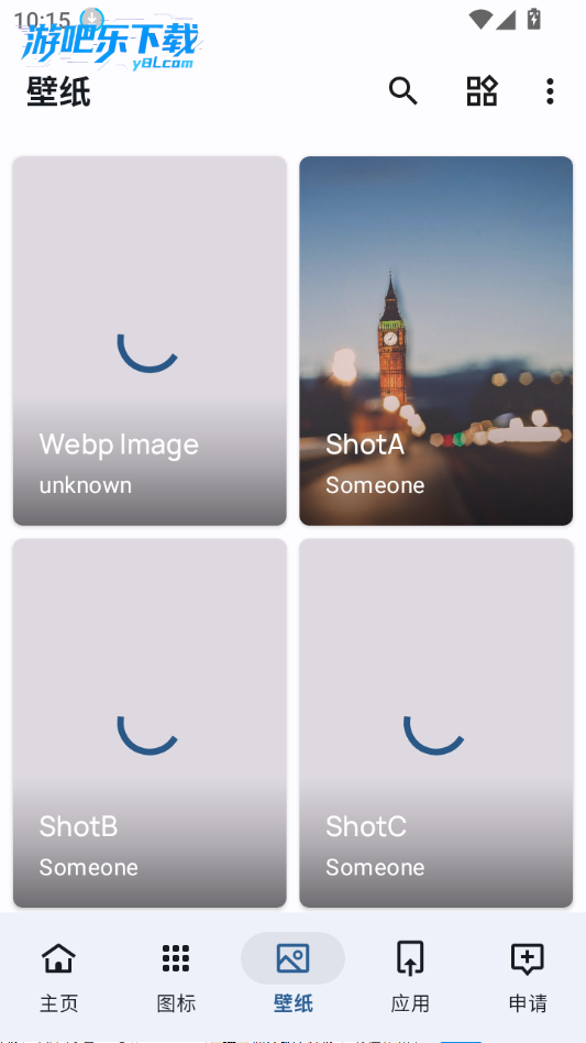 下载进入部软件,主页有很多的图标内容可以选择