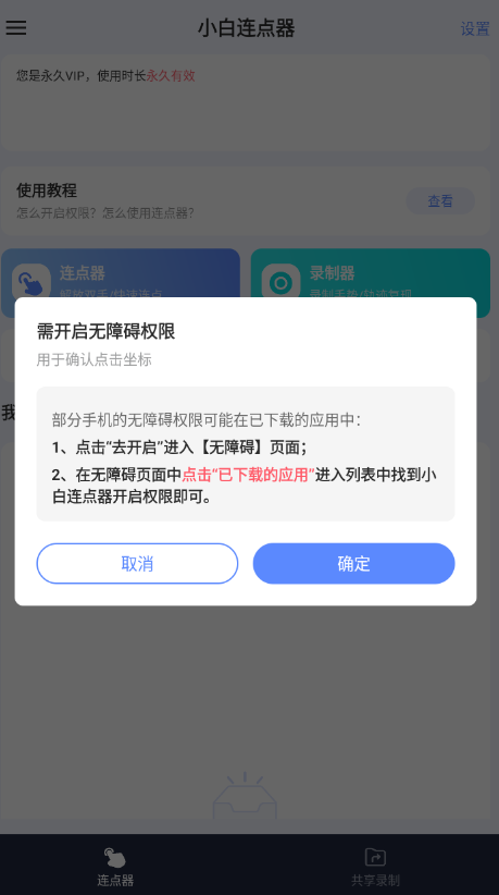 有没有免费好用的手机连点器推荐?本站为大家整合了各种手机连点器免费版资源,游戏专用、购物抢购、出行抢票等等手机连点器免root操作更便捷,有需要的用户快来下载使用吧!连点器怎么用教程1、打开在下载的“自动连点器”,在首页这里有“新手指南”,可以查看使用指引;使用时首先要点击“设置辅助功能权限”。2、点击“辅助功能权限”后,找到“无障碍功能菜单”,是默认关闭的,需要开启;3、点击允许开启无障碍功能菜单;4、