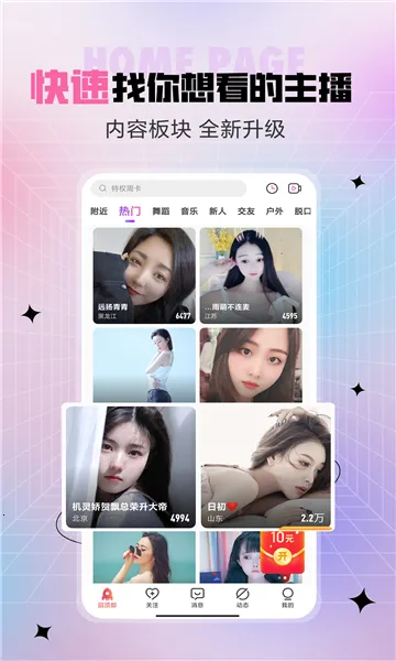 石榴直播是一款超棒的视频社交和在线演艺直播软件。它能满足你多样的观看需求,不管是舞蹈、音乐还是脱口秀等才艺表演,都有上万主播24小时精彩呈现。在这里,观众可通过弹幕和虚拟礼物与主播互动。
