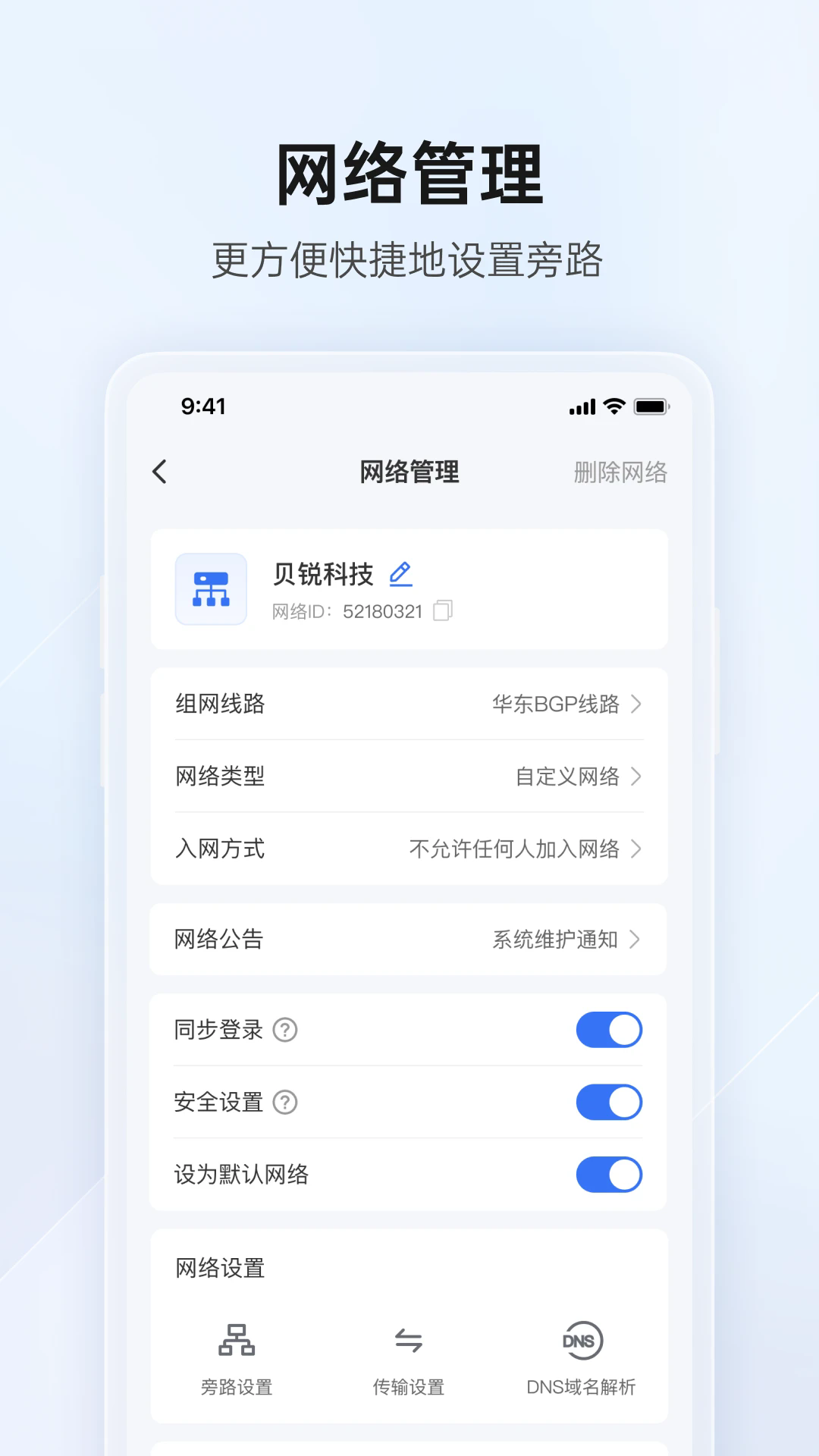 2. 围绕网络管理等核心能力展开,手机集中查看管理各分支网络。