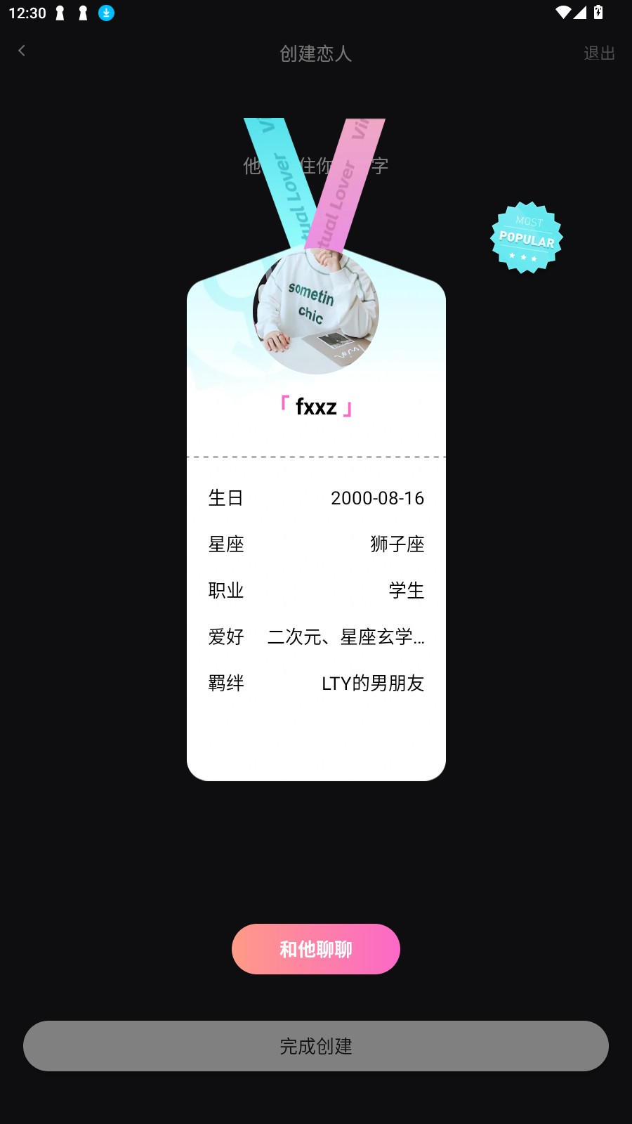 3、接着生成属于你的专属恋人。