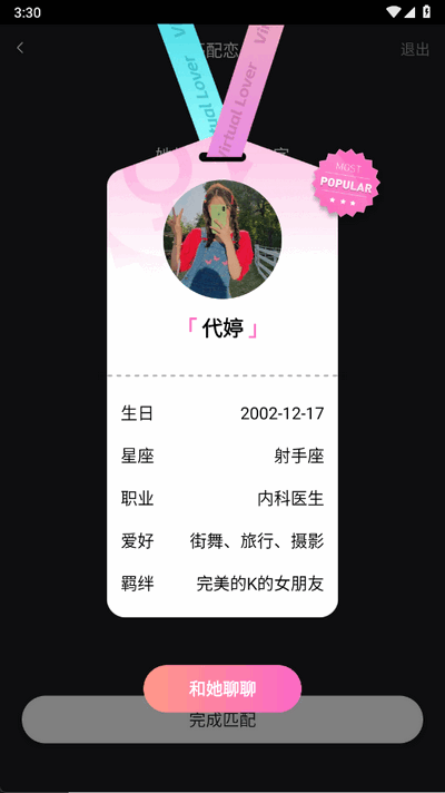 图片互动:支持发送照片 / 表情包,虚拟恋人能对图片内容评论,增强互动趣味性