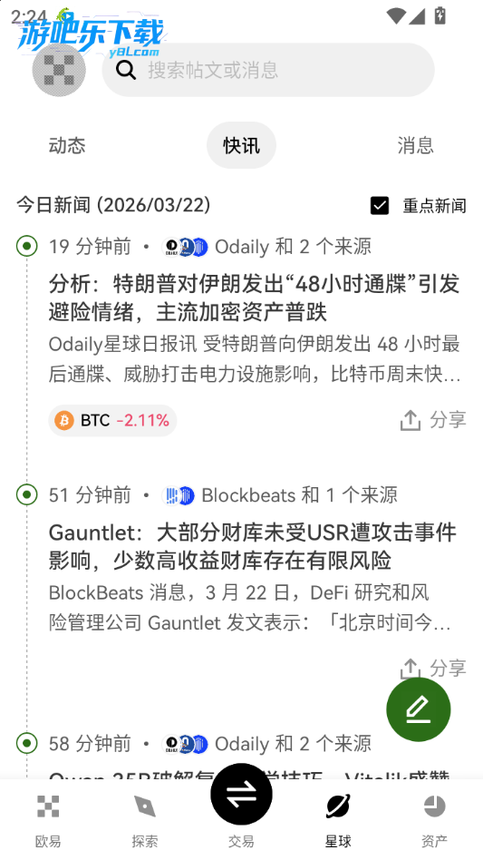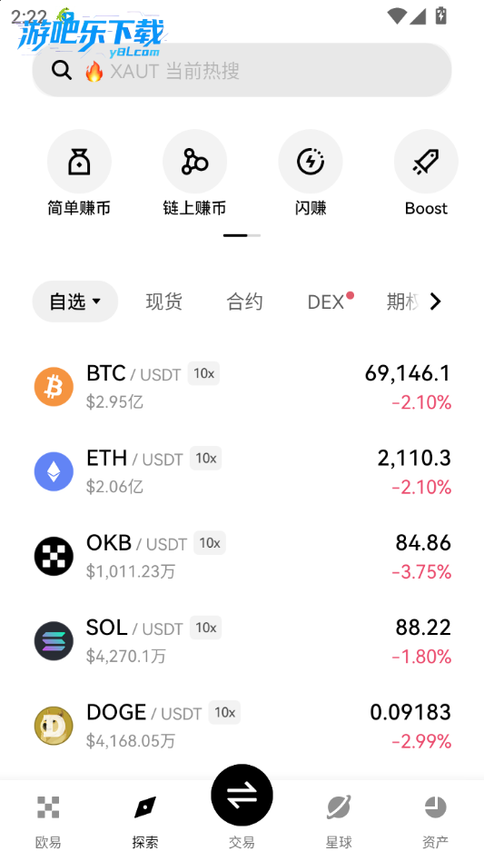 下载进入yoexs交易所软件,点击星球