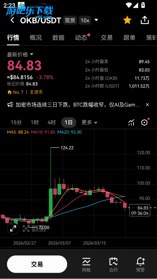 下载进入yoexs交易所软件,点击市场