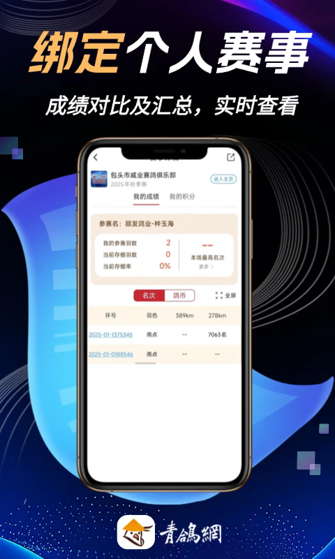 4. 支持绑定个人赛鸽信息,集中管理参赛记录和获奖情况。