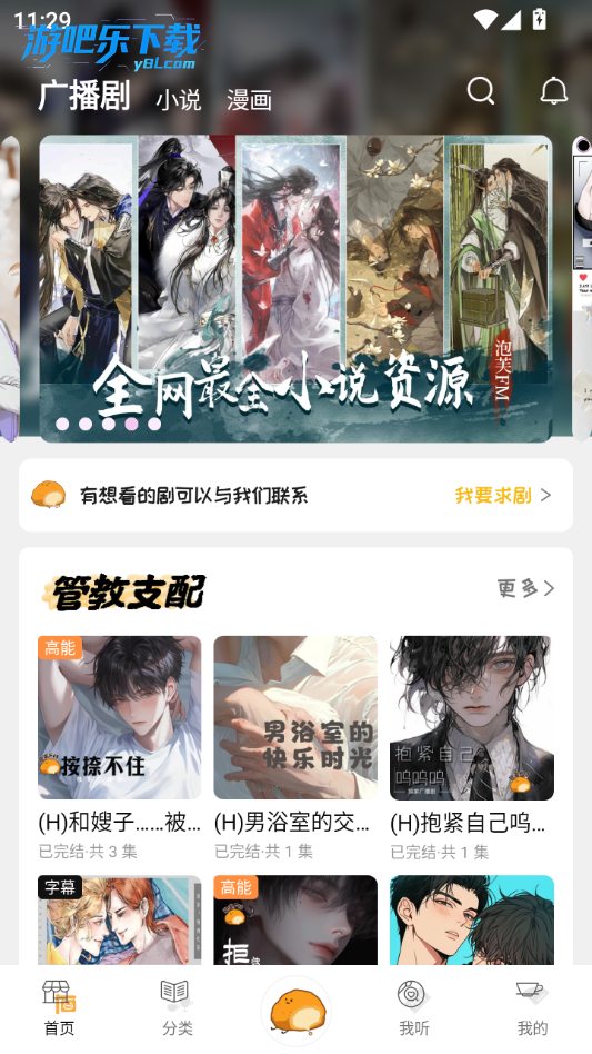 下载进入泡芙fm软件,这里有海量的广播剧可以选择