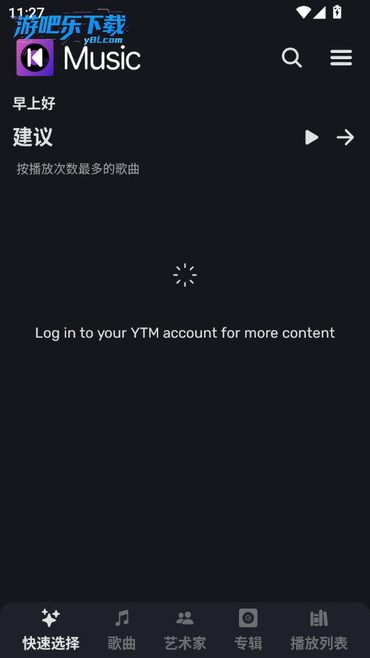 依赖 YouTube Music 曲库,部分地区 / 版权歌曲可能无法播放