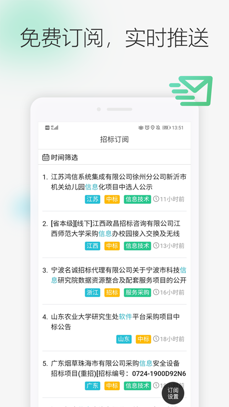 3、闪电推送,依关键词自动匹配,实时获取招标信息。