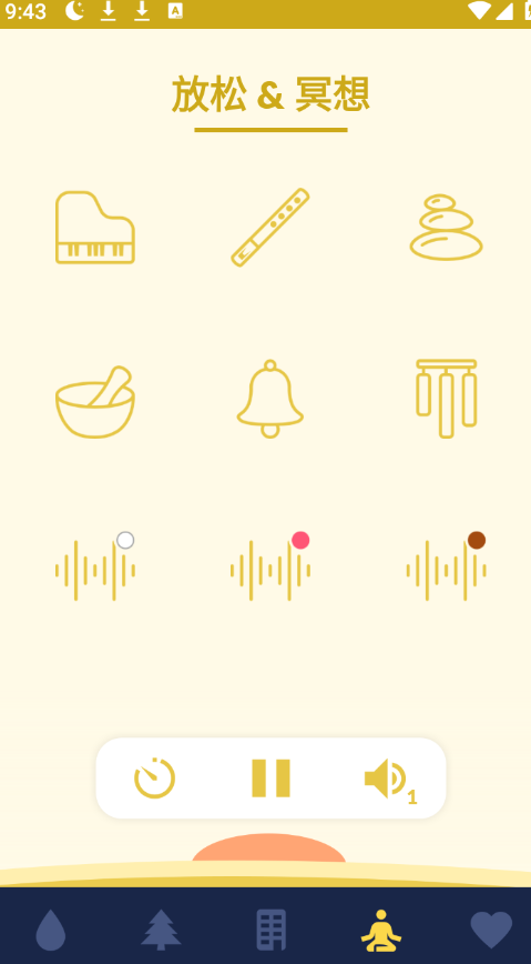白噪音与自然声音:雨声、海浪、森林、溪流、篝火等多种环境音效,模拟放松氛围