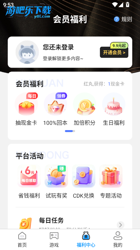 下载进入折氪丸游戏软件,点击我的