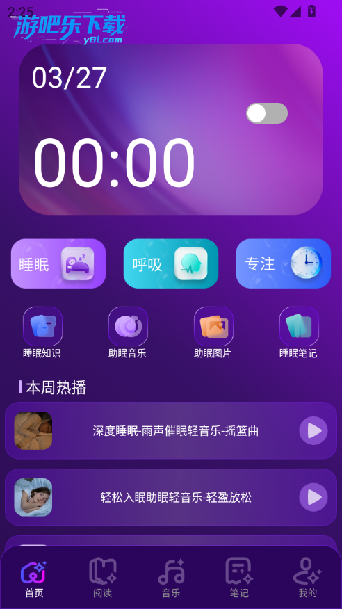 下载进入声屿轻音app,这里有超多的助眠功能可以选择