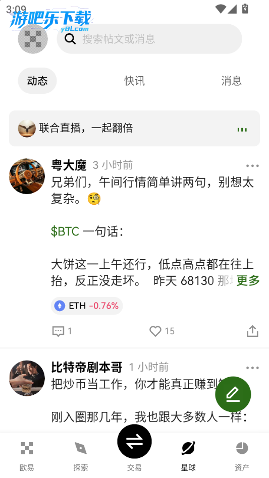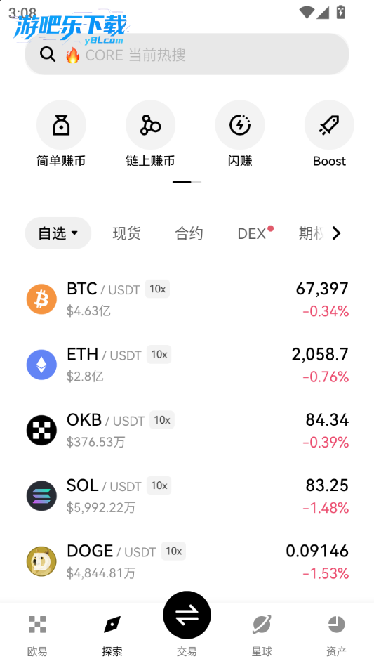 下载进入0e交易所软件,点击星球