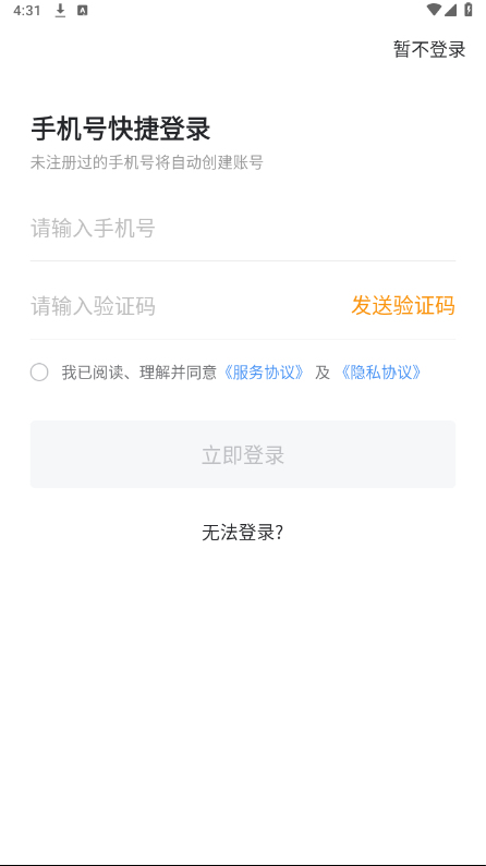 2、输入手机号获取验证码,然后点击同意协议,再点击立即登录,