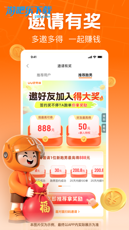 4. 平台福利关怀更温暖:平台定期组织福利关怀活动,让跑男们感受到贴心关怀。一部手机一辆电动车,就能开启想赚就赚模式,无论是想补贴家用、多挣外快,还是追求自由工作、照顾家庭,UU跑腿跑男端都能满足你,快加入和百万跑男一起并肩作战吧。