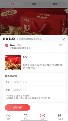 1. 便捷的兑换体验:用户能够在线购买兑换卡,然后轻松通过APP输入兑换码进行核销,随即线下到店就能兑换套餐,整个流程方便快捷。