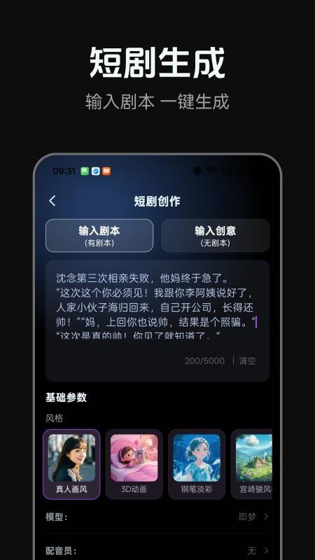 特点:无需补充任何信息,AI自动完善细节,适配抖音/快手/视频号,主打爽点、甜宠,节奏快、反转明显。