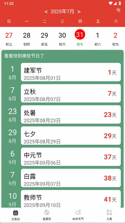 4. 将传统文化与现代生活完美结合,不仅有各类传统节日、节气等信息,还有详细科普介绍,让用户感受传统文化魅力的同时,也能更好地安排生活。
