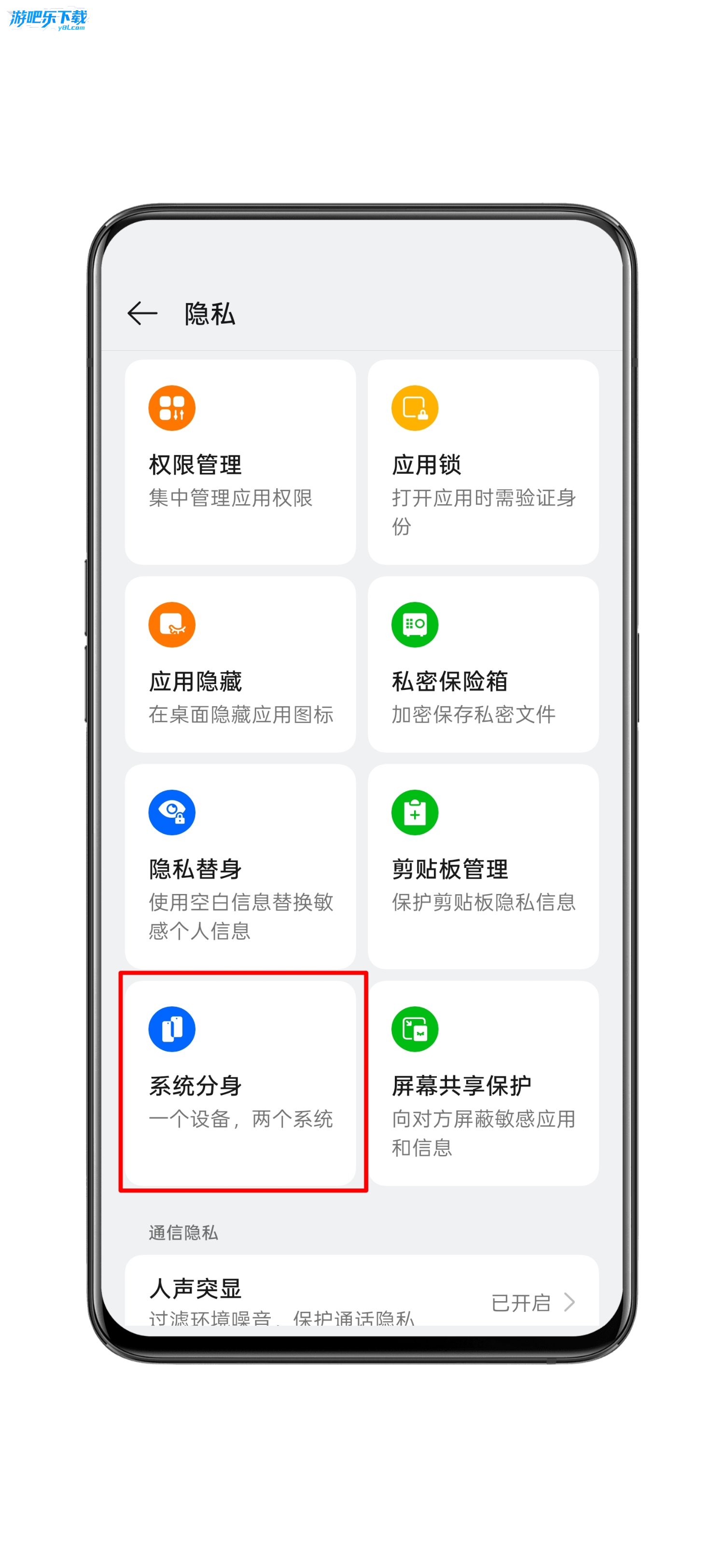 输入主系统密码进入主系统,打开【设置→权限与隐私(或 “隐私”)→系统分身】