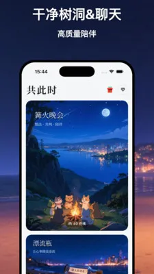 共此时是极简陌生人社交聊天树洞APP,超干净无开屏广告无直播打赏。这里没有眼花缭乱的充值项目,有的是漂流瓶、树洞日记、匿名聊天等功能。比如漂流瓶可匿名聊天,让心事随波逐流;还有共此时,能一起听歌聊天,沉浸式与他人共此时,能给人纯粹的社交体验,带你探索更多独特时空。