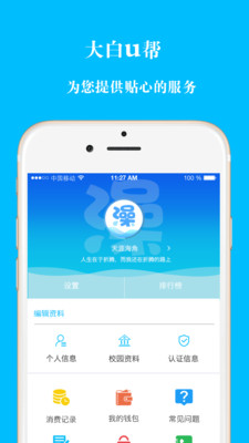 1. 大白U帮是面向大中专院校用户的校园服务手机客户端软件。