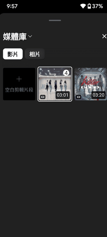 2. 第一次使用要先允许存取相片和影片,在媒体库中选择影片、照片,点击「汇入」建立专案就会进入编辑器。