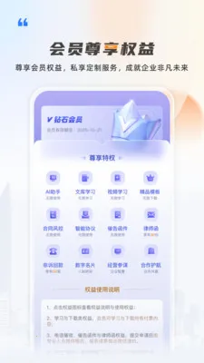 3. 特色服务丰富:拥有四大专业 AI 助手,在法律、财税、知识产权、融资领域提供专属咨询;企服管家团队工作日随时提供专业支持;会员权益体系分等级享受视频课程、文书模板等增值服务,全方位满足企业需求。