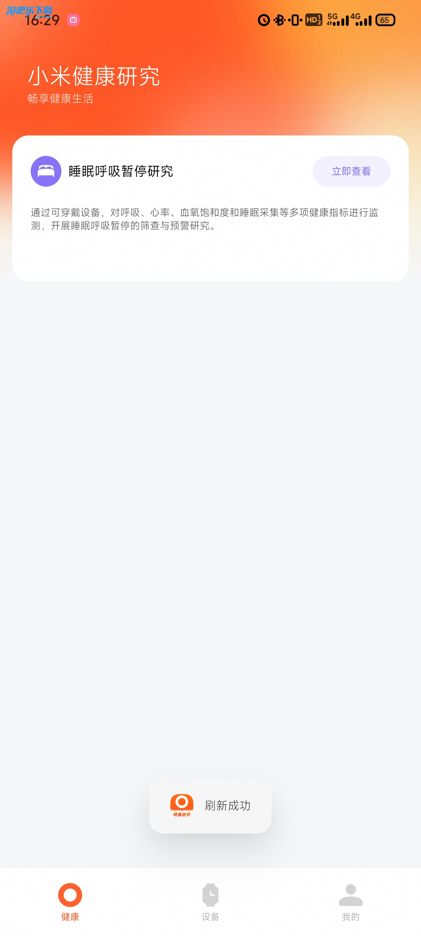 安装最新版小米健康研究 App(可在小米应用商店搜索下载)