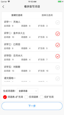 2. 具备词语打印功能,涵盖看拼音写词语及看词语写拼音的下载打印。