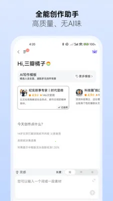 3. 一句话生成,写作简单:无需学习复杂提示词,输入需求即可完成逻辑构建、金句打磨和风格润色,几秒出爆款。