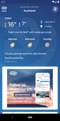 MetService是纽西兰气象局天气功能应用,有上午、下午等时段及47个预测领域隔夜图标助安排行程,可自动关联预测观察,能自定义仪表板等,还有77小时预报图、灾害警报、电视更新、雷达及交通摄像头等。