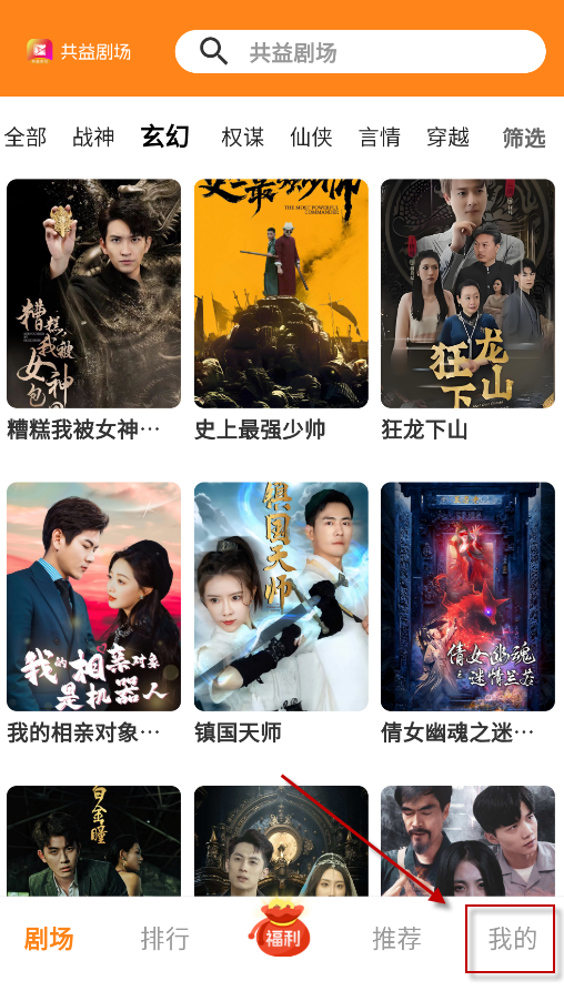 1、在剧场界面下,我们能够看到一系列战神、玄幻、权谋、仙侠等题材的短剧。