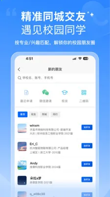 1、精准匹配基于大学生兴趣专业城市,推荐同频圈子告别无效社交