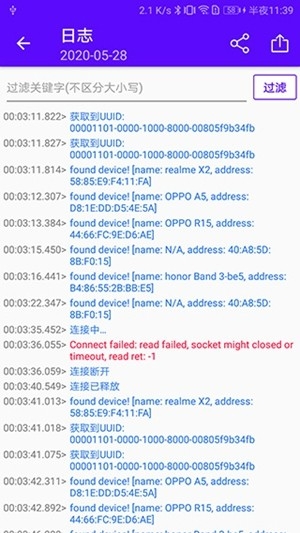 蓝牙调试宝app手机版是为蓝牙开发人员打造的调试工具。有快速设备搜索、循环搜索、过滤结果、收藏设备等功能,还能实时连接反馈状态。具备日志打印、数据统计、分享导出等优势,方便蓝牙技术研发与应用推广。