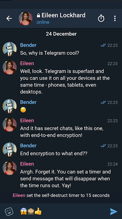 端到端加密:秘密聊天模式提供最高级别的隐私保护,消息无法被第三方截获