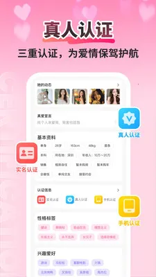 3. 拥有严苛人脸识别核验机制,杜绝虚假信息,交友更安心。