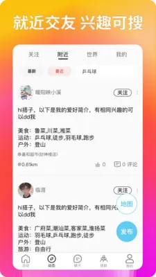 1. 附近社交大幅缩短路程时间,能快速找到各类搭子。